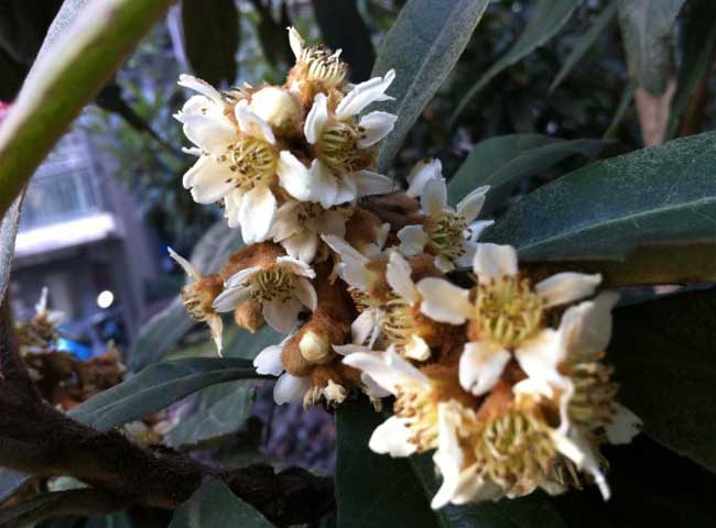 枇杷花为蔷薇科植物枇杷的花,植物形态详 "枇杷 "条。分布于中南及陕西、甘肃、江苏、安徽、浙江、江西、福建、台湾、四川、贵州、云南等地。其中以漳州市云霄县的产量最大,被誉为中国枇杷之乡。