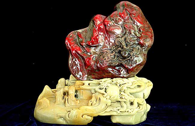 1、镶嵌法:采一质地较好的昌化石章,选择几面醒目的地方,分别挖出一个个深浅不一的小坑,然后用红色的硫化汞涂料嵌入,待其自然阴干后,再磨光上蜡。不过,这种嵌入的鸡血(硫化汞)没有层次,同时血与昌化石的交接处色泽生硬,没有过渡。