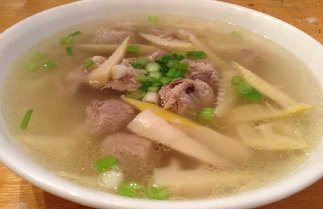 【做法】①将竹笋洗净切片,备用,排骨洗净后干水份,备用。②起一锅水,待水煮沸后,将作法1放入沸水中氽烫一下,捞起备用。③起一锅,将水倒入锅中一起拌煮,再将作法1及作法2放入锅中,一起煮。④待煮滚后,马上将火转至小火,并盖上锅盖后,焖煮30分钟,即可打开锅盖加入姜片与调味料一起拌煮调味,即完成。