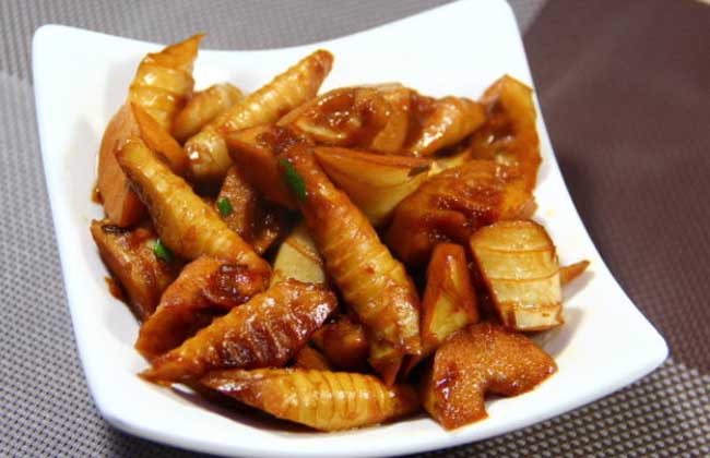 【材料】春笋、葱、老抽、盐、生抽、白砂糖。