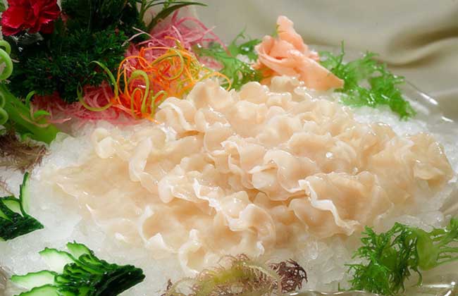 【做法】①象拔蚌去壳,放入开水中略烫,去除表皮,用刀批成两片,去除污渍,放入过滤水中。②取龙舟1只,船身垫冰,柠檬、草莓伴边。③将过滤水中批好的象拔蚌取出,批成薄片,依次码在龙舟上,壳放在龙舟前,放上荷兰芹、心里美萝卜,用牙签花点缀即可。④食用时与绿芥末、生抽同食。