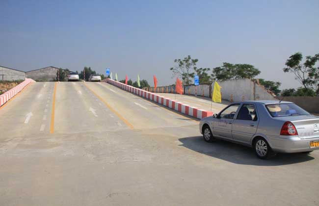 4、由车库驶入起始点:汽车挂1挡前行驶出车库,当看到引擎盖接近道路边线时,向右将转向盘转到极限位置,车直后停车。