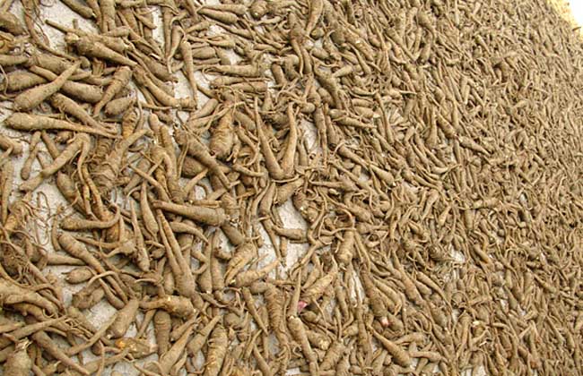2、秋播白芷第二年8月下旬叶片呈现枯萎状态时采收。当叶片桔黄时开始收获,选晴天,将白芷望叶割去,作为堆肥,然后用齿耙依次将根挖起,抖去泥土,运至晒场,进行加工。摘去侧根,另行干燥,并将主根上残留叶柄剪去。晒1-2天,再将主根依大、中、小三等级分别暴晒,以便管理。