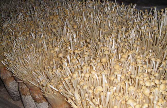 3、光线条件:金针菇不同生育阶段落对光的要求不同。在菌丝生长阶段不需要光照,在完全黑暗的条件下,菌丝正常生长。子实体生长有明显的向光性,在完全黑暗的条件下只长菇柄,不长菌盖,栽培实践中可利用这一特点来控制金针菇的长度。光对金针菇的品质影响较大。在明亮的条件下,菇的色泽深,呈褐色,菇柄基部绒毛较多,在黑暗条件下,菇的色泽较浅,菌盖和菇柄呈乳白色或浅黄色,而且菌盖小,菌柄长,生产上可利用这一特点来控制菇的色泽,生产出经济价值较高的金针菇。