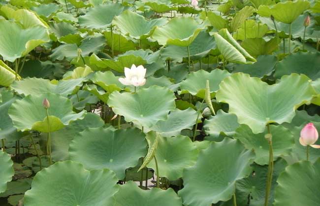 3、调节水位:从栽种到萌芽前灌浅水约5-10厘米,以提高地温,利于出苗,随着立叶及分枝的生长,逐渐加深水层至15-20厘米,结藕期及采收前宜灌浅水。