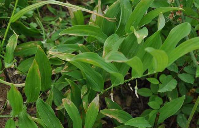 4、中耕除草:一年四季均可进行,要坚持“除早、除小、除了”的原则,可采用人工除草与施用玉竹专用除草剂相结合的办法除草,但人工除草切忌用锄头,应该用手拔除,以免伤苗死苗,同时要严防人畜入内,以免踩伤嫩苗,于每年清明节前新苗尚未出土前用除草剂对苗床、沟圹进行彻底除草,待苗长出后则只能用草甘磷或玉竹专用除草剂除草。