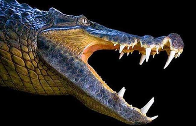 2、扁平鳄:扁平鳄完全就是一种坐享其成的捕食者,往往会一动不动地潜伏数小时之久,张着嘴巴等待愚蠢的猎物主动送上门来。头部的主要部分就是长长的嘴巴,嘴巴大约有0.9米长,在嘴巴的上下方各有两排白森森的利齿。