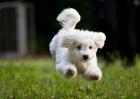 2、跳跃训练:牵狗到一个要跳到的地方前,让它坐在主人左边。障碍高度应不高于30米,主人先越过障碍,然后说“跳”,右手指着障碍物,左手轻拉牵引带,使它跳过障碍。完成动作后立即给予奖励。在训练中可慢慢加高障碍的高度。还可逐渐加长主人和狗之间的距离。