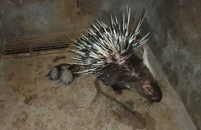 6、繁殖力强:豪猪八个月即可达性成熟,一年四季均可发情交配,自然状况下年产仔1~2胎,胎产仔1~2只,人工养殖年产仔2~3胎,胎产仔2~4只。