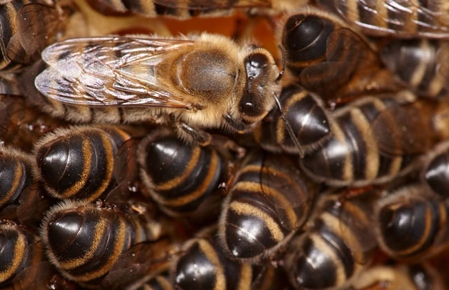 当满载而归的采集蜂回巢时,一进门就像接力赛跑中传递接力棒似的把蜜囊中的花蜜口对口地吐交给内勤蜂,或者暂时缷在空巢房内,然后又马上出去进行第二次采集……如此一次接着一次地飞啊!采啊!直到天黑。