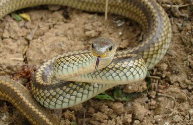 3、黑线乌梢蛇:黑线乌梢蛇为游蛇科乌梢蛇属体形较大的无毒蛇,体长120~200厘米,雄大雌小,头背黄绿色,两侧各有两条黑线纵纹,幼体纵贯全身,随着年龄增长身体前部逐渐消失,腹面浅黄色,两侧黑色纵纹,分布于中国的四川、云南、西藏、贵州以及东南亚一些国家。