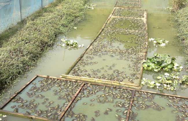 4、饲料。用牛蛙的副产品(头、内脏)干燥做成混合饲料喂鸡,可增加产蛋率。