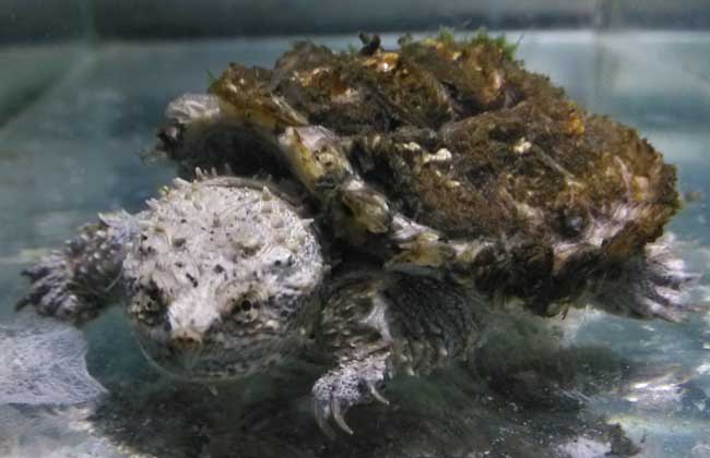 7、饲料:鳄鱼龟的食性比较杂,通常鱼、泥鳅、肉等都可以投喂,配合饲料一般为鳄鱼龟总体重的1.5~2.5%、鲜活饲料的5~10%。每天定时定量的喂养3次,投喂食物的范围要均匀广泛。