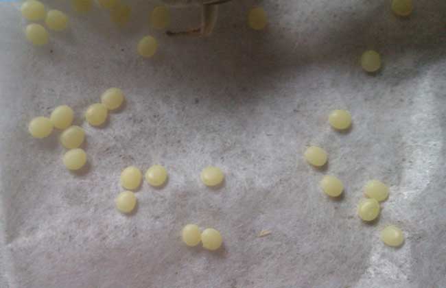 蚕宝宝以卵繁殖,蚕卵看上去很像细粒芝麻,宽约1毫米,厚约0.5毫米,当温度升高了蚕卵就开始发育,经过7-15天,当蚕卵变得透明并可以看到里面的轮廓,就表示蚕宝宝快要出来了!(图:蚕宝宝的卵)