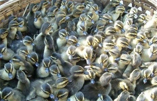 一般要在开始啄地,有吃食欲望时喂食,大概在出生后一天到两天左右开始喂食,喂食精细饲料,一天喂食3次,一次大概20克左右,三天后一天喂食5次,喂食一次30克,一周后加青饲切细混合精饲料喂养,然后就开始一天喂食5到6次,此时食量大增,正是速生期,到一个月以后就要降低到正常喂食次数每天三次,一次大概80克到100克的量。白天常常撒一些菜叶给鸭子,自由采食,喝水,每天更换,放置在育雏室里。