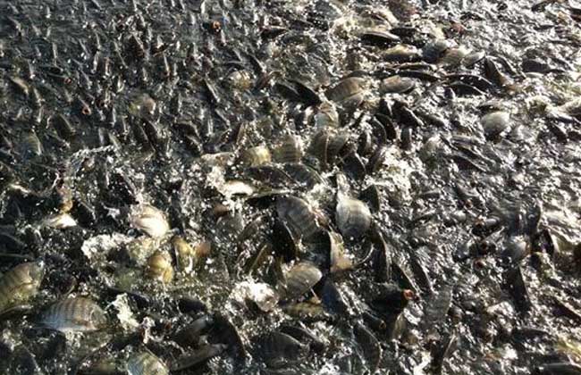 3、前期喂养:放人鱼苗后,把浸泡过的花生饼或菜籽饼等搅拌均匀,沿塘边向中央泼洒,每亩每天按1.5-2斤投喂。经过一个月的养殖,鱼苗可长至10厘米左右,体重10-12克的规格。