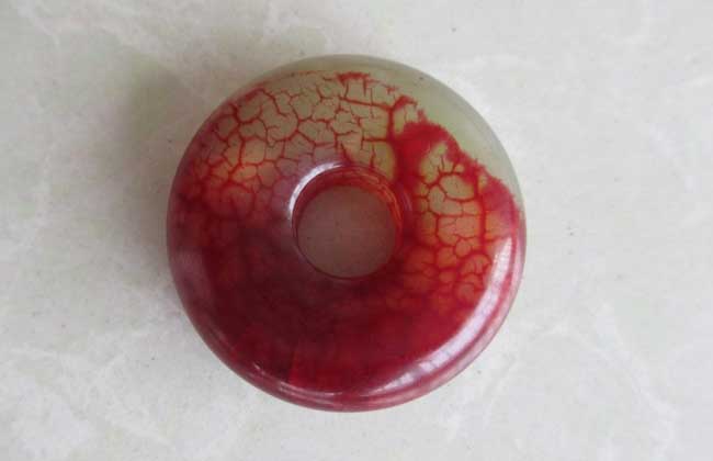 2、鸡血玉:鸡血玉是石英岩、玉髓和赤铁矿的集合体,其中的“血”为赤铁矿,对人体是无毒无害,“地”是石英、玉髓、赤铁矿的集合体。