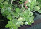 玉树株高1~3米。茎干肉质,粗壮,干皮灰白,色浅,分枝多,小枝褐绿色,色深。叶肉质,卵圆形,长4厘米左右,宽3厘米,叶片灰绿色。花期春末夏初,筒状花直径2厘米,白或淡粉色。