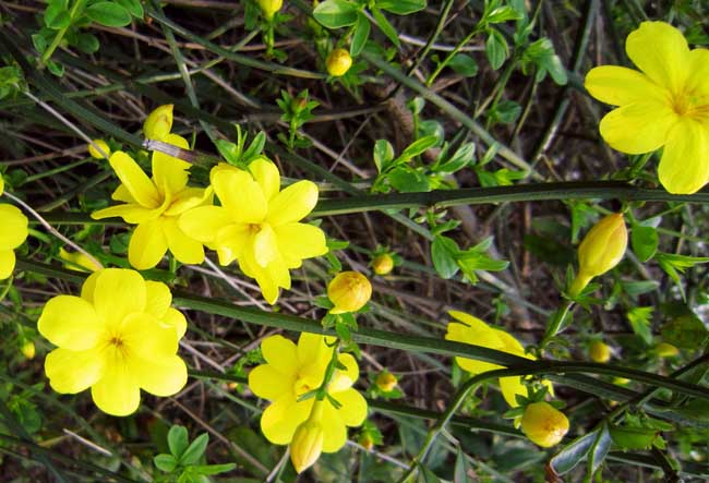 迎春花的枝条细长、一般是呈拱形往下垂生长,植株较高,最高可达5米。迎春花的花瓣为黄色、枝条健壮、小叶表面光滑、全缘。迎春花的花期在3-5月,花期可长达50天。迎春花喜欢阳光、耐寒冷、耐旱耐阴、不耐涝。适合生长在酸性、肥沃、排水性好的土壤中。