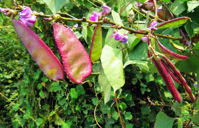 扁豆又叫火镰扁豆、藤豆、沿篱豆、鹊豆、查豆、月亮菜,双子叶植物纲。种类也很多,如白扁豆、紫扁豆、油豆、蛇豆、猪耳豆(形似猪耳朵)。为豆科扁豆属多年生、缠绕藤本植物。是一种豆类植物。世界各热带、亚热带地区均有栽培,扁豆花有红白两种,豆荚有绿白、浅绿、粉红或紫红等色。嫩荚作蔬食,白花和白色种子入药,有利于暑湿邪气的祛除,健脾止泻之效,同时扁豆还有显著的消退肿瘤的作用。