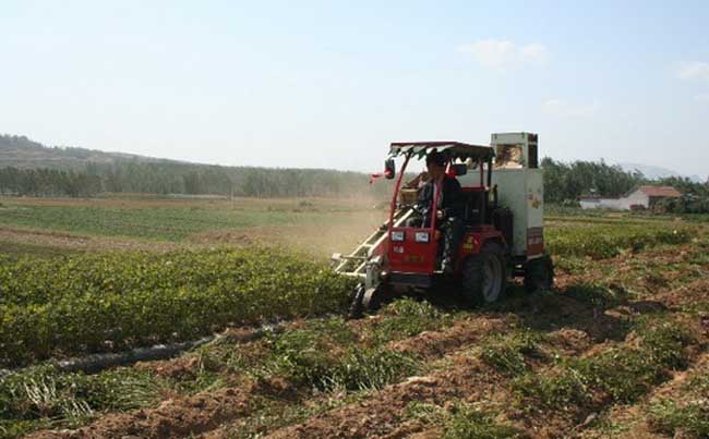 花生收获机是指在花生收获过程中完成挖果、分离泥土、铺条、捡拾、摘果、清选等项作业的作物收获机械。在实际生产中,需要根据自己的需要和花生收获机的特点,选择适宜的机具,能一次完成花生挖掘、除土、摘果、清选、集果等项作业,生产效率高、作业损失少、转移速度快、使用安全可靠。长期以来,由于花生种植、收获和加工大都靠人工完成,劳动强度大、效率低。在整个花生生产过程中,收获环节用工占全过程的1/3以上,作业成本占整个花生生产成本的50%以上。发展花生收获机械化,对降低作业成本,提高作业效率、促进农民增收,具有现实意义。