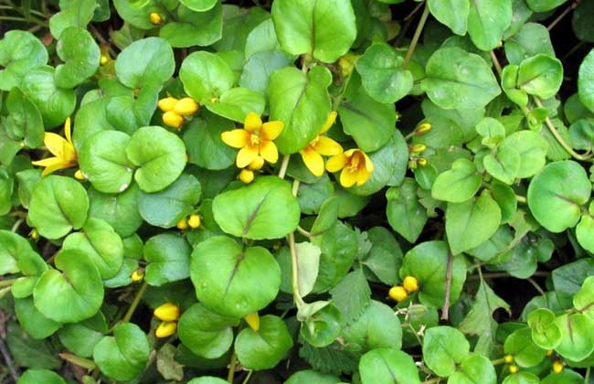 过路黄别名金钱草、真金草、金银花、走游草、铺地莲等,属报春花目报春花科多年生草本植物,有短毛或近于无毛,叶、萼、花冠均有黑色腺条,茎匍匐,由基部向顶端逐渐细弱呈鞭状,长20~60厘米,河南、陕西及长江流域和西南各省也有分布。全草可供药用,为药典收录的正品金钱草药材,治尿路结石、胆囊炎、胆结石、黄疸性肝炎、水肿、跌打损伤、毒蛇咬伤及毒蕈和药物中毒,外敷治火烫伤及化脓性炎症。