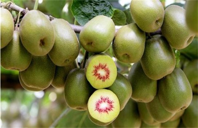 红心猕猴桃的果实圆柱形兼倒卵形,果皮呈绿色且较薄,果毛极易脱落,果肉黄绿色,子房鲜红色,这也是它的名字由来,单果平均重达70克,最大可达110克。