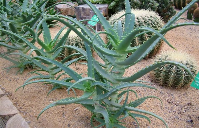 木立芦荟的株行可高达一米多,类似与树木。茎干侧部还会生出新芽,并且在秋冬季的时候还会开花。花朵颜色以黄色为主,从叶片中抽发出来。木立芦荟主要被利用在医药行业,有着较高的药用价值。不过食用价值一般,不可多食,易中毒。