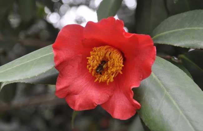 美人茶是山茶的栽培品种,叶长椭圆形,有光泽,叶缘有钝锯齿,较稀,花色大红或水红,喇叭形,较繁多花期1-4月。