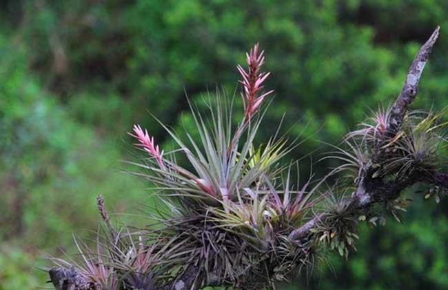 空气凤梨大部分的品种都生长在干燥的环境,小部分则喜潮湿环境,开出的花朵较大,但花朵色彩较单调,以附生的方式栖息于另一种植物或树干上,时间久了,还会逐渐长出根来,借以固定植株本身,可由种子或侧芽繁殖下一代。
