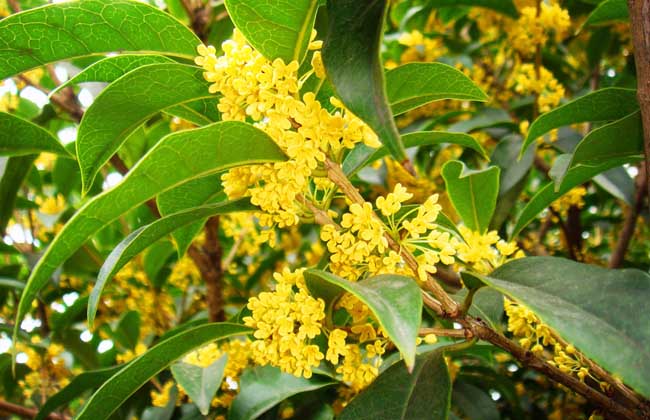 桂花通常在9~10月开花,聚伞花序簇生于叶腋,花冠黄白色、淡黄色、黄色或桔红色,花芳香,清可绝尘,浓能远溢,堪称一绝,尤其是仲秋时节,丛桂怒放,夜静轮圆之际,把酒赏桂,陈香扑鼻,令人神清气爽,在中国古代的咏花诗词中,咏桂之作的数量也颇为可观,自古就深受中国人的喜爱。