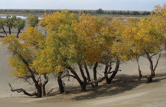 胡杨树栽培技术是干旱大陆性气侯条件下的树种,喜光、抗热、抗大气干旱、抗盐碱、抗风沙,在湿热的气侯条件和粘重土壤上生长不良。胡杨要求沙质土壤,沙漠河流流向哪里,胡杨就跟随到哪里,而沙漠河流的变迁又相当频繁,于是胡杨在沙漠中处处留下了曾驻足的痕迹。胡杨靠着根系的保障,地下水位不低于4米能生活得很自在,在地下水位跌到6~9米后就显得萎靡不振了,地下水位再低下去就会死亡。