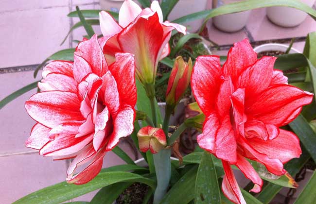 2、盆栽越冬:朱顶红原盆带土过冬的,必须放在温室内。盆土必须保持干燥。若土过于潮湿,植株继续生长,就会妨碍其休眠,影响翌年正常开花。冬季湿度大,鳞球内的花芽易腐烂,造成翌年无花。盆栽越冬的植株比干藏越冬的植株抽生花叶早。