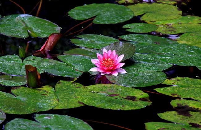5、水体:睡莲喜欢在较平静、无大波浪或急流的水体中生长,所以在高压水柱的人工喷泉水池或有急流瀑布的水池中种植往往生长不良。