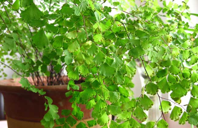 3、阳光:铁线蕨喜明亮的散射光,怕太阳直晒。光线太强,叶片枯黄甚至死亡,夏季可适当遮荫,长时间强光直射会造成大部分叶片枯黄。在室内应放在光线阴暗的地方,即使放置1年也能正常生长。