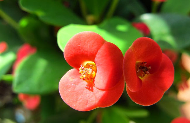 大家都知道光照充足植株才能生长茂盛,虎刺梅也不例外,最好保证一年四季阳光充足,开花期间尤其要注意。养在室内的盆栽,需要经常将虎刺梅搬到有光照的地方,阳光充足了花色才会鲜艳,叶片才会茂盛。若长期放在阴暗的环境中,不仅长势不好,还影响开花。