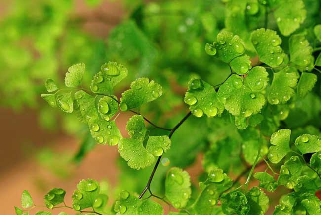 铁线蕨喜湿润的环境,生长旺季要充分浇水,除保持盆土湿洞外,还要注意有较高的空气湿度,空气干燥时向植株周围洒水。特别是夏季,每天要浇1-2次水,如果缺水,就会引起叶片萎缩。浇水忌盆土时干时湿,易使叶片变黄。每月施2-3次稀薄液肥,施肥时不要沾污叶面,以免引起烂叶,出于铁线蕨的喜钙习性,盆土宜加适量石灰和碎蛋壳,经常施钙质肥料效果则会更好。冬季要减少浇水,停止施肥。