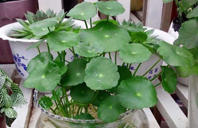 6、病虫:铜钱草病虫害极少。生长适应能力强,无须刻意护理。养植一段时间后,铜钱草将充满整个容器。常向叶面喷水清洗叶片以保持青翠亮泽。生长密集后应注意通风透气,不然植株容易出现黄化。