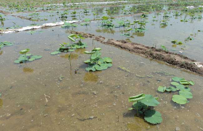 5、合理施肥:施足基肥并早施追肥,亩施碳酸氢铵100千克、磷肥50千克及硫酸钾复合肥15千克,并尽量多施有机肥,开始出现立叶时每亩追施尿素15千克。由于藕田底肥相对较足,晚稻可少施或不施底肥。