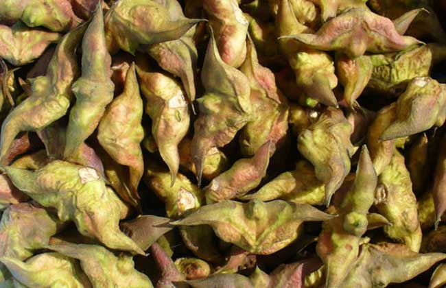 2、小白菱:产于江苏吴江、苏州等地,中晚熟品种,清明播种,白露到霜降收获,亩产600~1200斤,果形较小,宜熟食,每斤60~70个。