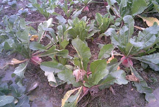 平整,施肥均匀,这样才能促进土壤中有效养分和有益微生物的增加,并能疏松透气,有利于吸收根对养分和水分的吸收,从而使叶面积迅速扩大,肉质根加速膨大。每亩可施75千克三元复合肥作基肥。然后进行土壤消毒杀菌和地下害虫的防治。杀菌药剂选用50%多菌灵600倍液或70%甲基托布津800-1000倍液喷雾,杀虫药剂可选用48%乐斯本乳油800~1000倍液喷雾。