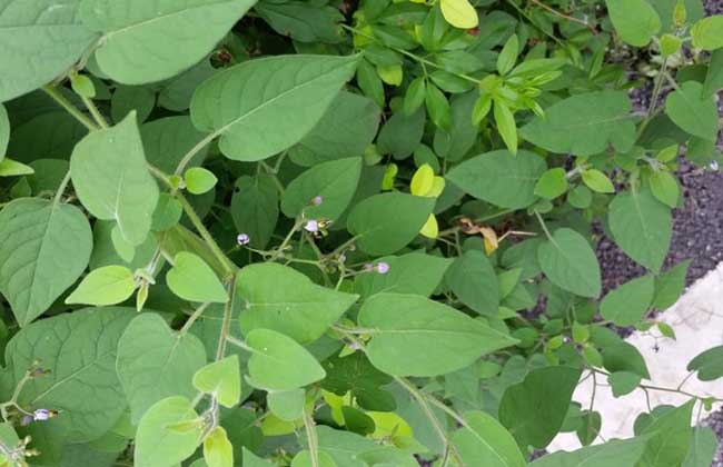 3、设立支架:白英苗高30厘米以上时,在行间用竹杆或树枝搭设支架,牵引茎蔓攀援向上生长,改善行间通风透光条件,增强光合作用,促进茎叶生长,有利增产。架高1.7米左右,两行间用横杆连接,使之稳固。