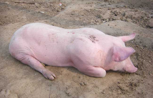 猪丹毒是由猪丹毒杆菌引起的一种急性、热性传染病。发病特征为高烧和皮肤上产生紫红色疹块,俗称“打火印”,慢性病例表现为心内膜炎及关节炎。丹毒杆菌对外界抵抗力强,但加热到75℃5分钟就可死亡,1%漂白粉、2%氢氧化钠溶液、5%石灰乳可以很快杀死。