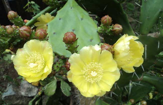 仙人掌会开花。仙人掌类植物都能开花,其中很多种类只要栽培得当很快就可开花,花通常着生在刺座上,一般春季开花。仙人掌开花有个特点,即一般开在充分经受阳光的成熟片状茎上。除了真正的兰色和黑色外,各种颜色的花都有,而且千变万化。墨西哥食用仙人掌一般开白色、黄色或橘黄色的花朵。很多种类仙人掌都能一次开大量花,景色十分壮观。