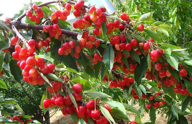 3、光照:樱桃是喜光树种,光照条件好时,树体健壮,果枝寿命长,花芽充实,坐果率高,果实成熟早,着色好,糖度高,酸味少。光照条件差时,树体易徒长,树冠内枝条衰弱,结果枝寿命短,结果部位外移,花芽发育不良,坐果率低,果实着色差,成熟晚,质量差。