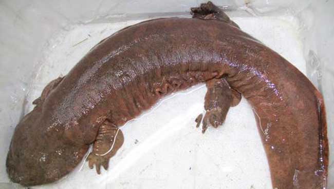4、种苗放养。大鲵养殖一般引进10厘米以上的幼鲵,每平方米水面可放鲵20条左右。种苗放养前养殖地用硫酸铜2毫克/升浸泡5小时消毒,鲵体用氯化钠3%-4%药浴10分钟。事先在池内用麻石搭建洞穴,放置水草以供大鲵躲藏。