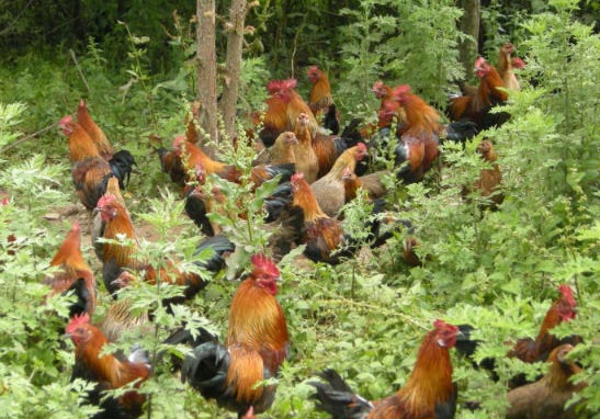 3、必须在宽敞的养殖场草地上,让草鸡主动找食。空气是对鸡肉质量影响最大的因素,在压抑环境下长大的鸡不仅口感不好,对人体还会产生不良影响。