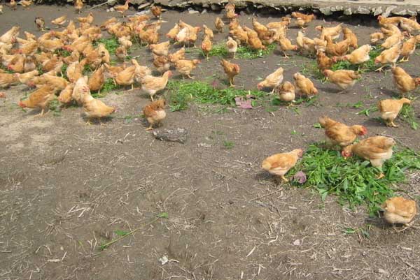 2、饲料很有讲究,草鸡必须是吃青草、虫子、杂粮等“规范性饲料的”,吃配制复合饲料的绝对不行。饲养人员更不能对其进行“填鸭式”喂养。