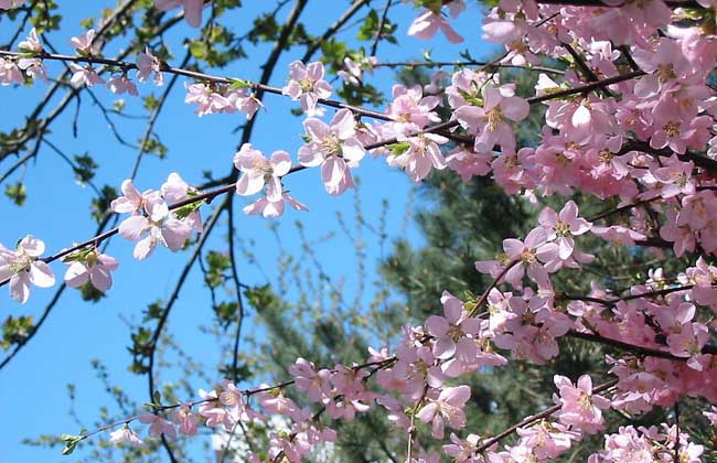 5、修剪:海棠花在落叶后至春芽前,需要进行一次修剪,把枯枝、弱枝以及有病虫的枝剪掉,以保持其通风透光,当然,为保证其开花旺盛,需要把长枝实行短截,使其他腋芽可获得更多营养,以减少养分消耗,在生长的期间,要及时进行摘心,保持其营养不分散。
