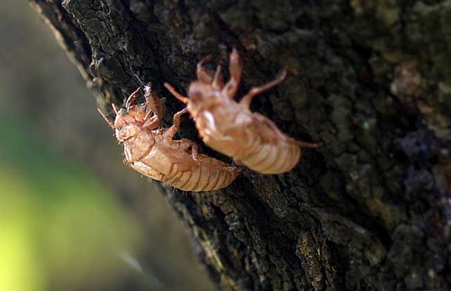 2、幼虫:蝉的幼虫生活在土中,有一对强壮的开掘前足,在寄主植物根部吸食汁液,活动性较小,通常会在土中待上几年甚至十几年,秋后温度下降,便钻入深土层中越冬,春暖后又向上迁移至树根附近活动,一年中以5月份在土中的若虫数量最多。
